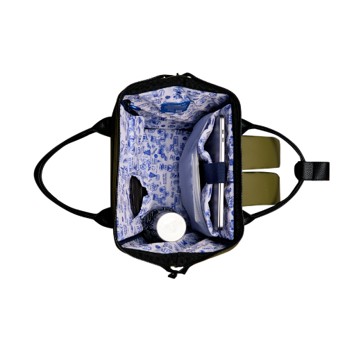 - Gran abertura de la boca, tiene unas varillas metálicas que le da un gran acceso, con cierre por cremallera