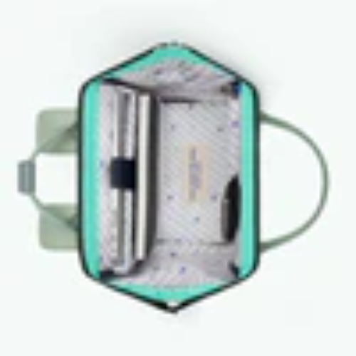 - Mochila de color azul verdoso claro